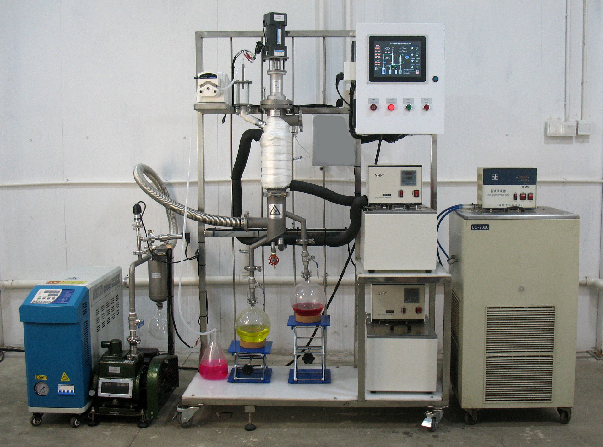 4.刮板薄膜蒸發器匹配效果好,可連接精餾柱,還可以和其他裝置配套使用。