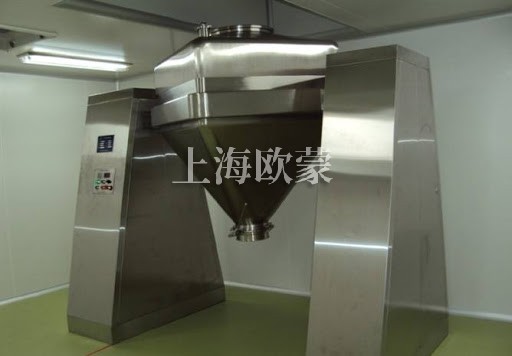 OMFH實驗室型混合機整機裝于可移動的底座上。主要部件包括機架、回轉系統、電氣控制系統、料斗等。錐形混合料斗主要由斗體、斗蓋及卡箍、壓塊、蝶閥等組成。